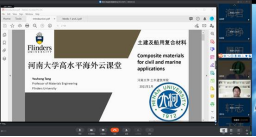 与澳大利亚弗林德斯大学合作,有幸邀请到澳大利亚弗林德斯大学Yonghong Tang教授为本院2020级研究生讲述海外高水平云课堂。课程名称:《COMPOSITE MATERIALS FOR CIVIL AND MARINE APPLICATIONS》(土建及船用复合材料),全英文授课。本课程主要介绍纤维增强复合材料在土木工程,建筑工程和海洋工程中的相关应用及前沿研究。内容主要包括:复合材料概述;复合材料在土木、建筑和海洋等工程中的应用;复合材料在土建及海洋工程应用中的设计理论及实践;复合材料在土建及海洋工程应用中的性能测试标准及准则;复合材料在土建及船舶领域中的制造工艺及质量控制等方面。本次海外云课堂按照课程计划从1月11日开始每天都会通过钉钉进行线上讲授并持续到1月23日,总共讲授13次课,参课学生共107人。由于这次海外云课堂是为了拓展学生视野,选择主题是土建及船用复合材料,为了让学生能够更好学好这门课程,在上课前Yonghong Tang教授会把要讲的课件提前发给同学们,让学生提前预习,并且会提供一些相关的参考书籍。每次上课都会进行全程录像,课程结束后,按时上传到钉钉群,以便同学们能够回顾学习。