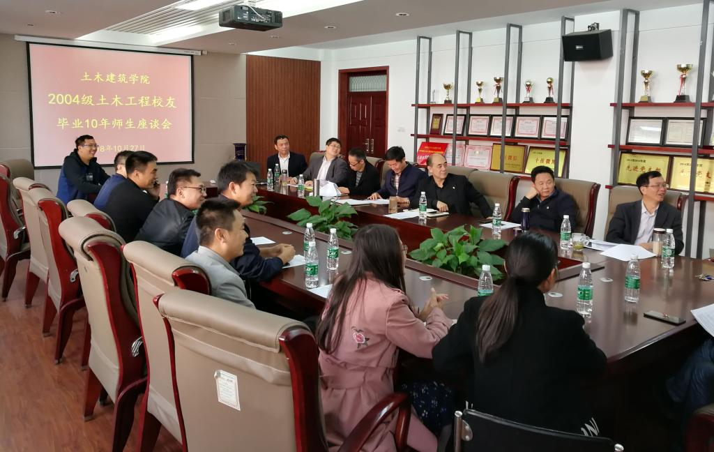 2004级土木工程校友毕业十周年师生座谈会在院会议室举行。学院领导及部分老师代表参会与30多位校友一起重温师生情谊,重拾青春足迹,畅谈人生感悟。