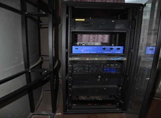 三通道环幕立体投影系统、配套图形设备系统、计算工作站以及立体头盔等高性能计算和虚拟仿真设备,如图1~图4。拥有开发和服务功能的虚拟仿真软件,如:Unity3D、Virtools、VRP、3DMax、ANSYS、ABAQUS、FLASH、Revit等仿真模拟软件。
