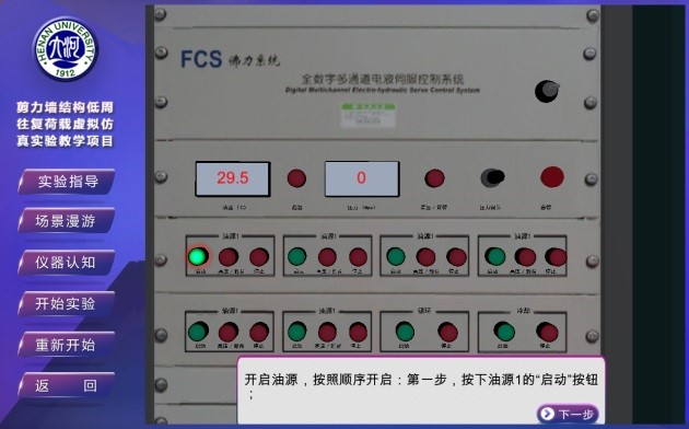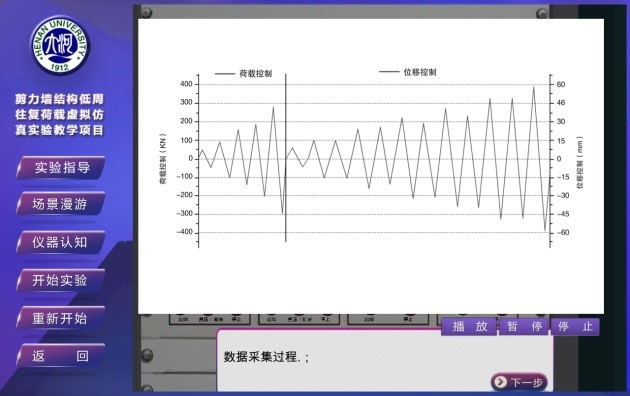 进入低周往复荷载实验中剪力墙低周往复荷载实验点击“开始实验”详细操作步骤如下: