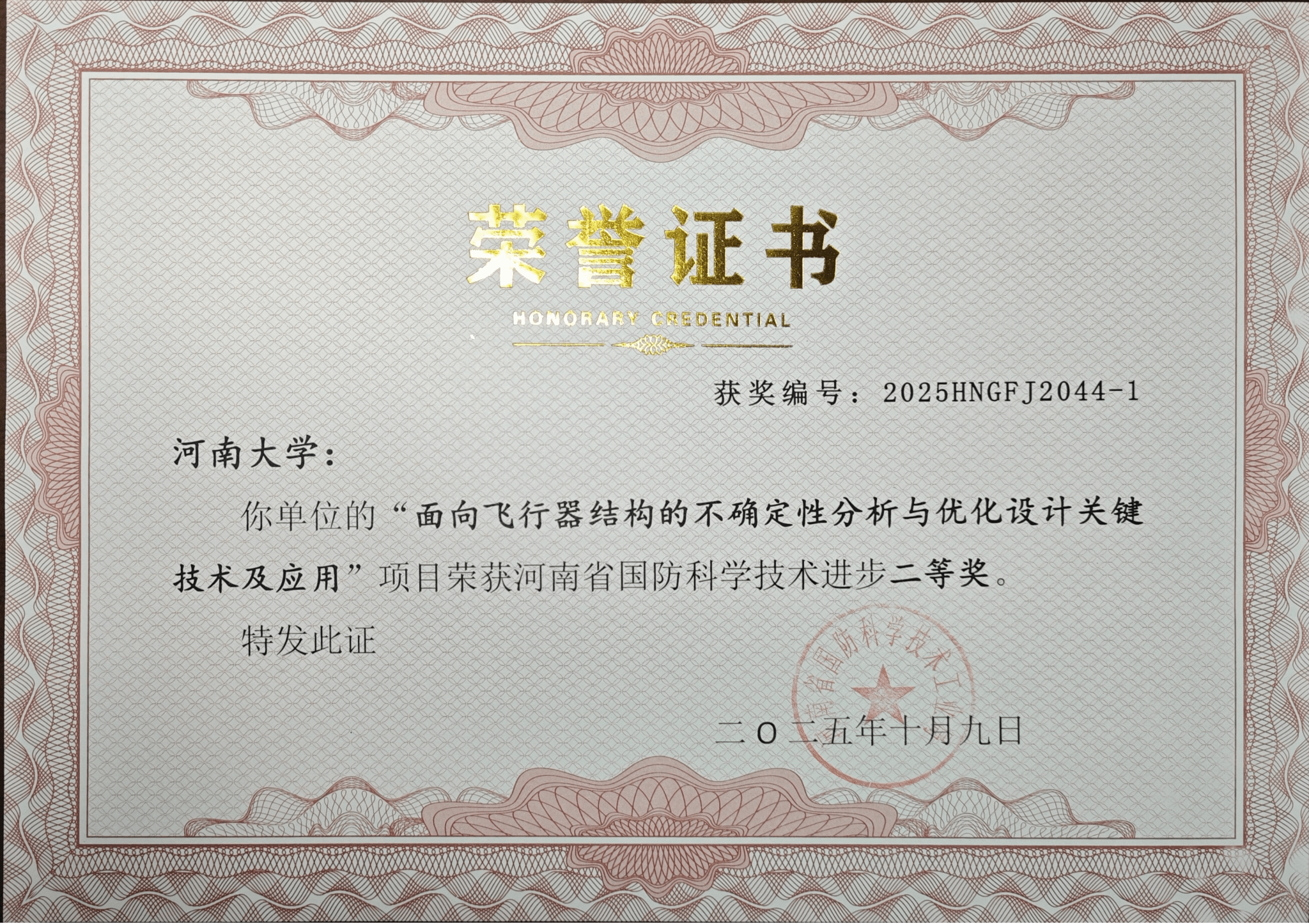 近日,河南省国防科学技术进步奖揭晓,小说狂人 罗振先副教授牵头完成的“面向飞行器结构的不确定性分析与优化设计关键技术及应用”项目荣获二等奖,我校为第一完成单位。项目面向国防工程重大装备的轻量化和高可靠设计需求,创新提出非概率可靠性结构优化设计理论,应用于航空装备的设计研发,标志着小说狂人 服务国防科技创新的能力迈上新台阶。
